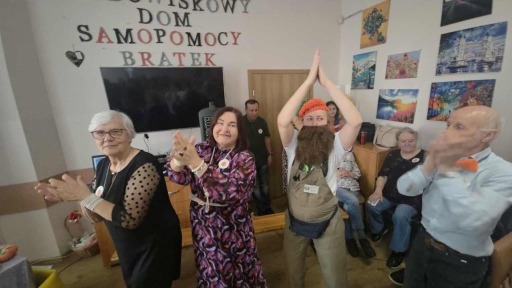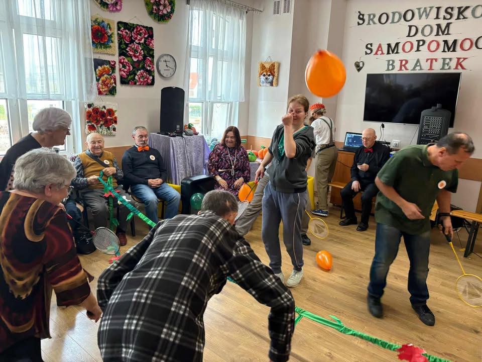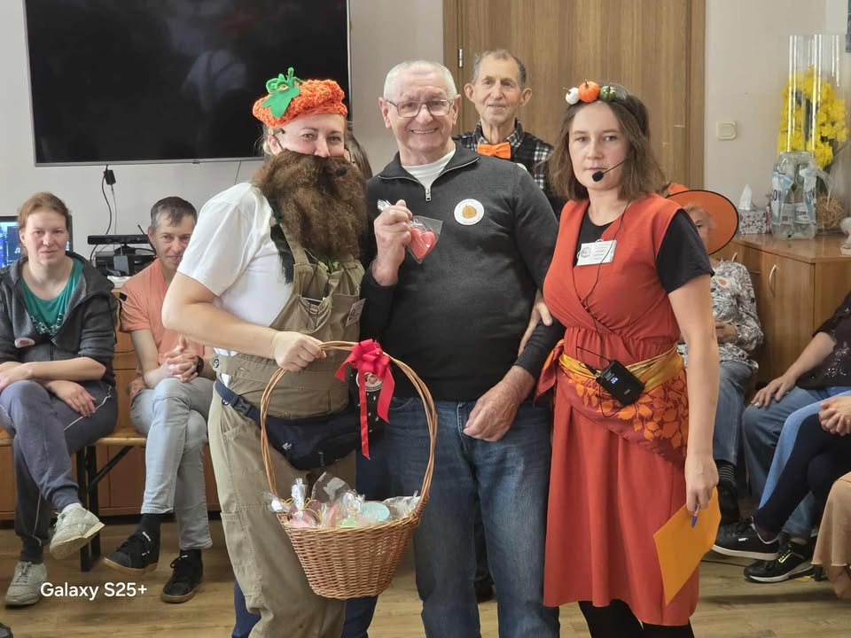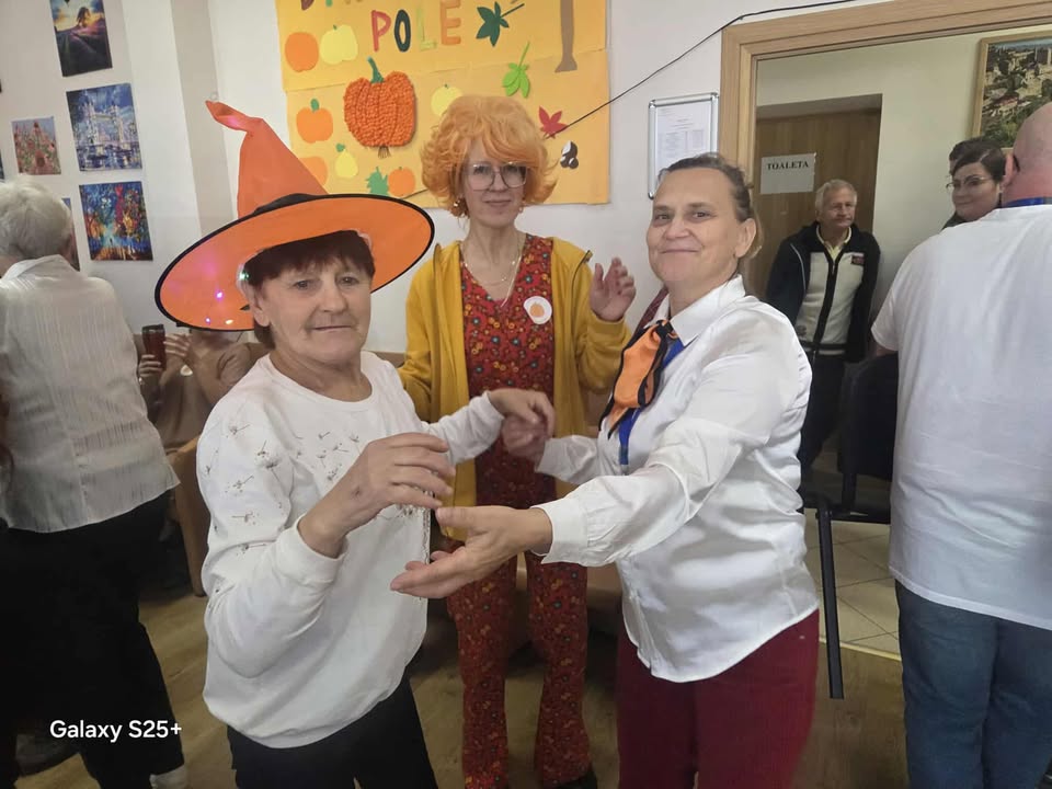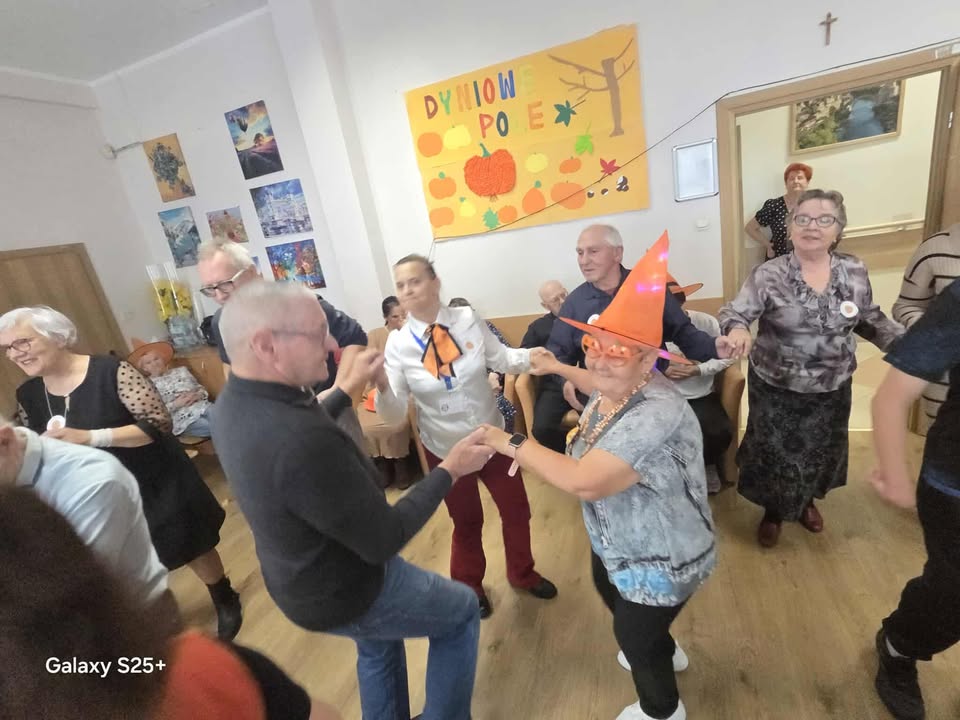 “W środowy dzień w Naszym Domu słychać było śmiech i zapach dyni! Uczestnicy i Nasi Goście zamienili salę w prawdziwy parkiet taneczny, na którym nogi same rwały się do tańca. DJ, czyli niezastąpione terapeutki zadbały, żeby nikt nie siedział zbyt długo bo przy takich hitach nawet dynie podskakiwały!