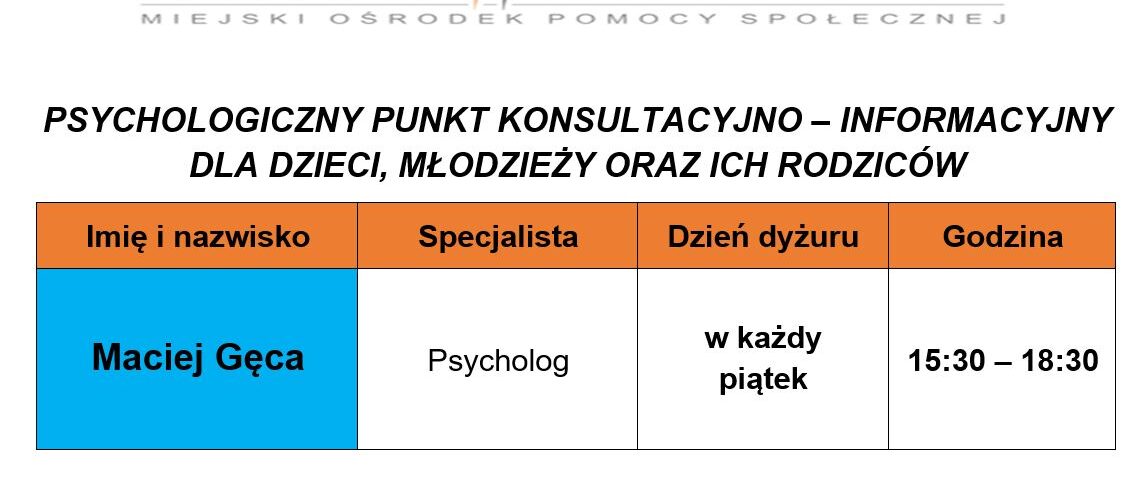 PSYCHOLOGICZNYPUNKT KONSULTACYJNO – INFORMACYJNYDLA DZIECI, MŁODZIEŻY ORAZ ICH RODZICÓW
