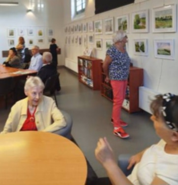 Dnia 9 września 2025r uczestnicy Dziennego Domu Senior+ i Klubu Senior+ wybrali się do Biblioteki Multimedialnej w Centrum Użyteczności Publicznej na wystawę pt. “Kolorowa pasja” Lubomiry Wacławskiej. Autorka w dużej mierze w swej twórczości przedstawiła pejzaże i roślinność, co odzwierciedla jej zainteresowania i inspiracje. Oglądaliśmy obrazy wykonane rożnymi technikami, farbami olejnymi i akwarelami. Wystawa zainteresowała Seniorów wzbudzając wiele emocji i dyskusji.